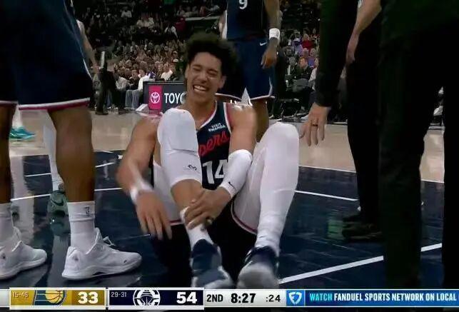 尼德豪泽却在防守落地后痛苦瘫倒在地