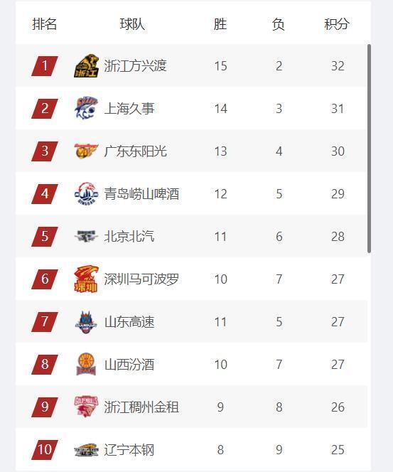 stake平台-CBA最新排名,上海队稳居第2,首钢队跌至第5,辽宁队第10